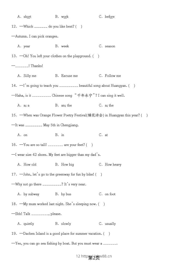 六年级下英语选择题100题(含答案)admin5个月前发布关注私信05114六年级下英语选择题100题(含答案)此内容为付费资源,请付费后查看¥9.9黄金会员免费钻石会员免费暂时无法购买,请与站长联系您当前未登录!建议登陆后购买,可保存购买订单格式pdf页数17 页大小468.91 KB付费资源 ——预览已结束,还剩15页未读——开通会员后可免费下载高清完整文档 © 版权声明文章版权归作者所有,未经允许请勿转载。THE END小学英语 喜欢就支持一下吧点赞14 分享QQ空间微博QQ好友海报分享复制链接收藏